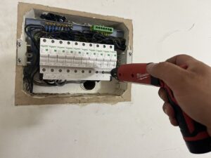 karbantartott elosztószekrény, kismegszakítók nyomatékra húzása